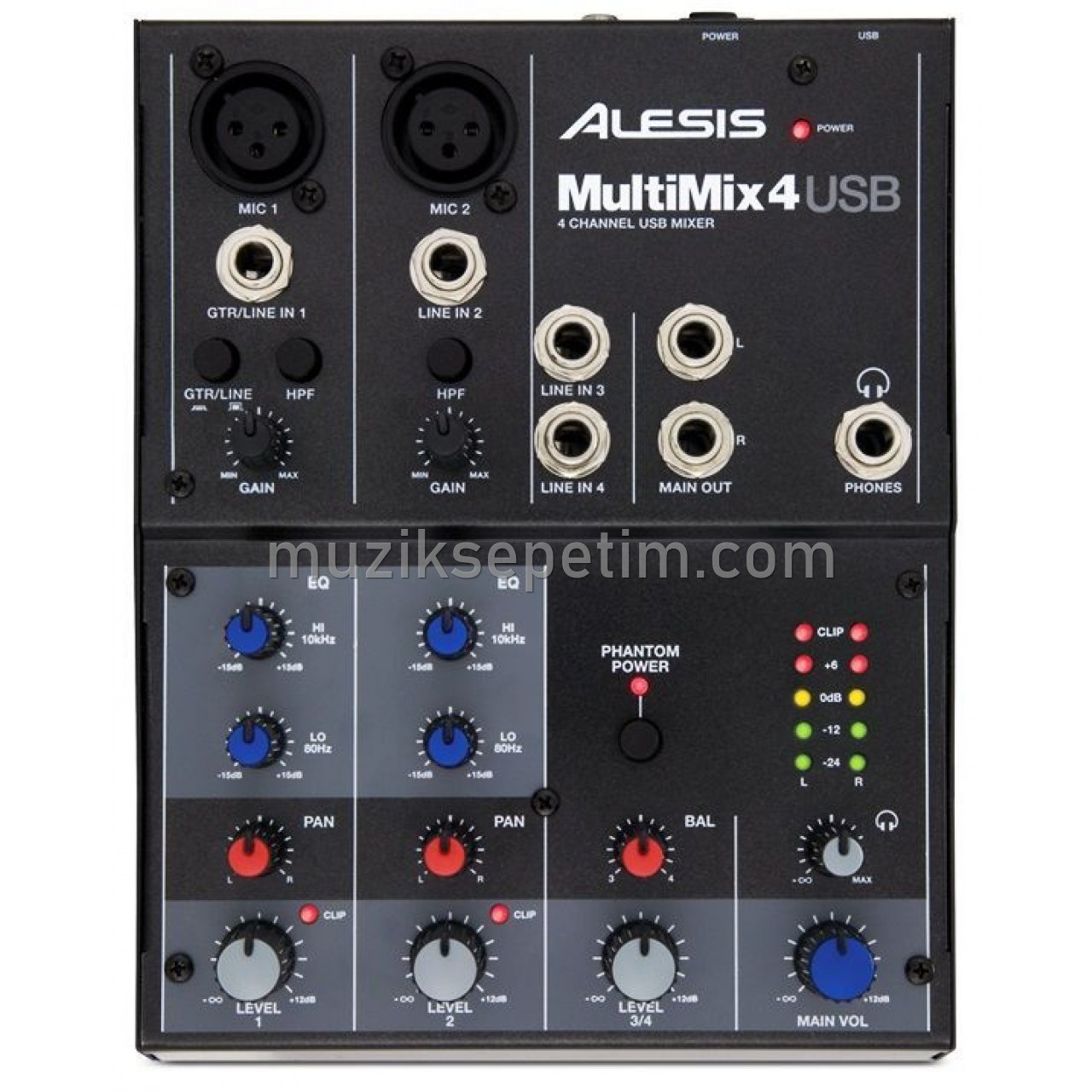 Canlı müzik ve ev stüdyonuz için ideal bir üründür. MultiMix 4 USB üzerindeki volüm, pan, EQ kontrolleri ile hızlı ve hatasız kayıt yapmanızı sağlar. MultiMix 4 USB mikser 2 kanal, beş kademeli, çok renkli LED ışıklı seviye metresi ile görsel olarakta ana çıkışları gözlemlemenizi sağlar. Birinci ve ikinci kanal düşük frekans ve rüzgar gürültülerini kesmek için 75Hz high-pass filtresine sahiptir. Kanal bir ve iki bağımsız gain ve pan düğmelerine, high ve low EQ düğmelerine sahiptir. Daha pratik stereo kayıt için kanal 3 ve 4 ortak pan ve seviye kontrolleri vardır.
