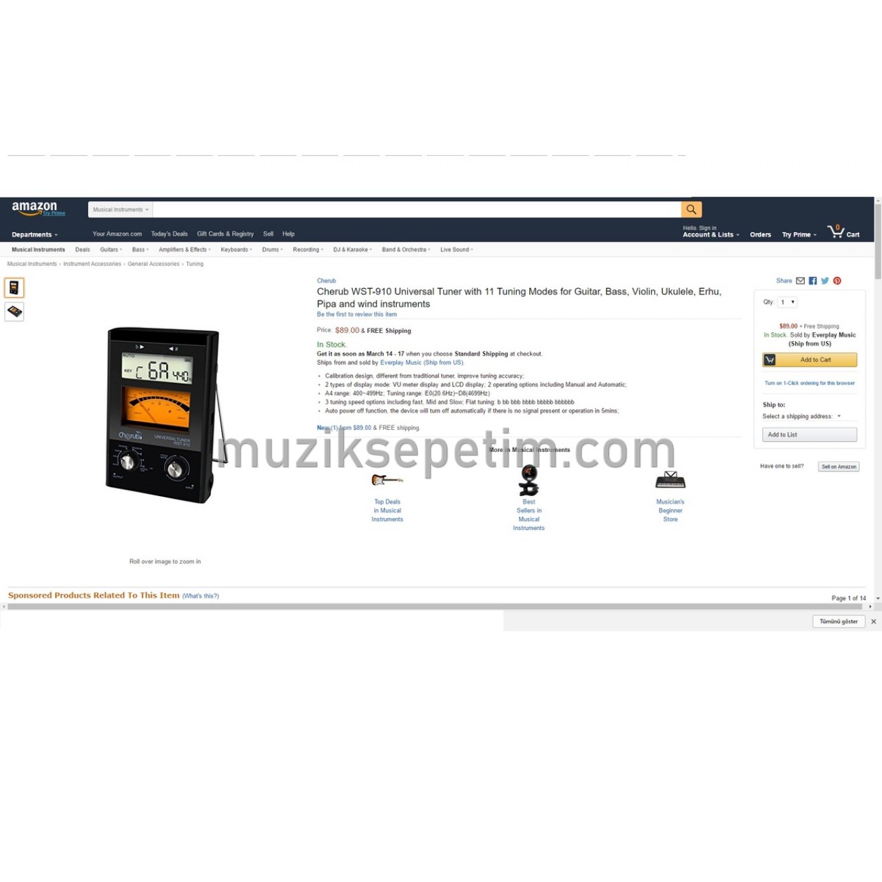 Cherub WST-910 Universal Tuner - Dijital Akort Aleti