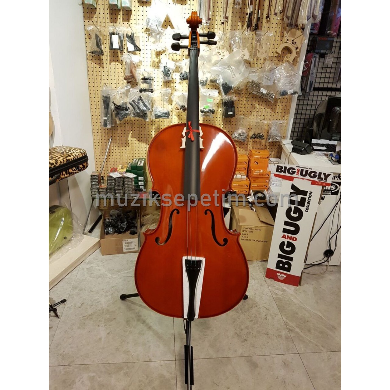 Cello ile birlikte verilenler: yay, kılıf, köprü ve teller.