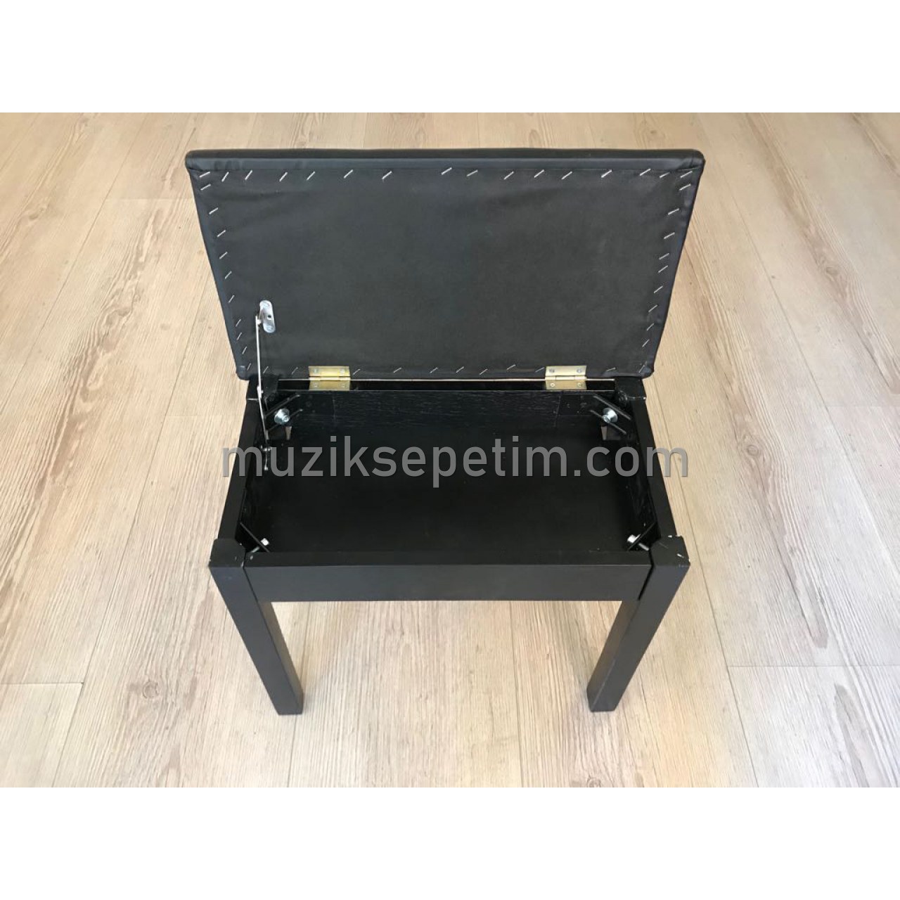 AYAKLARI MASİF VE DAYANIKLI AĞAÇTAN, SANDIKLI, SİYAH RENK PİYANO TABURESİ,