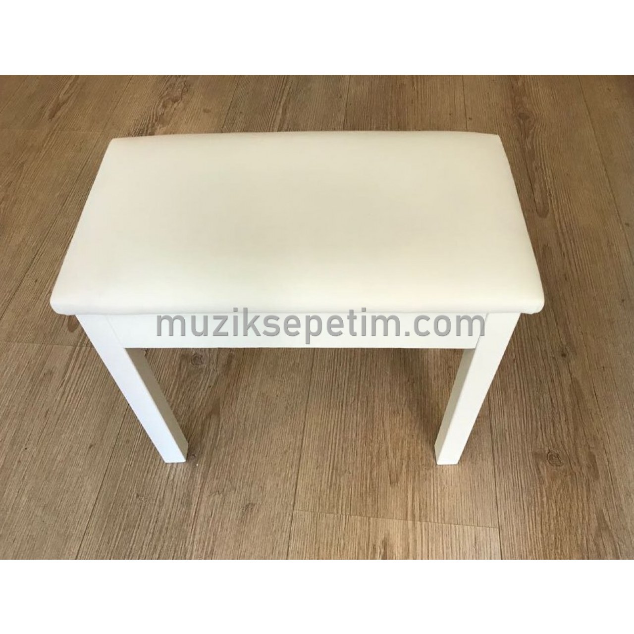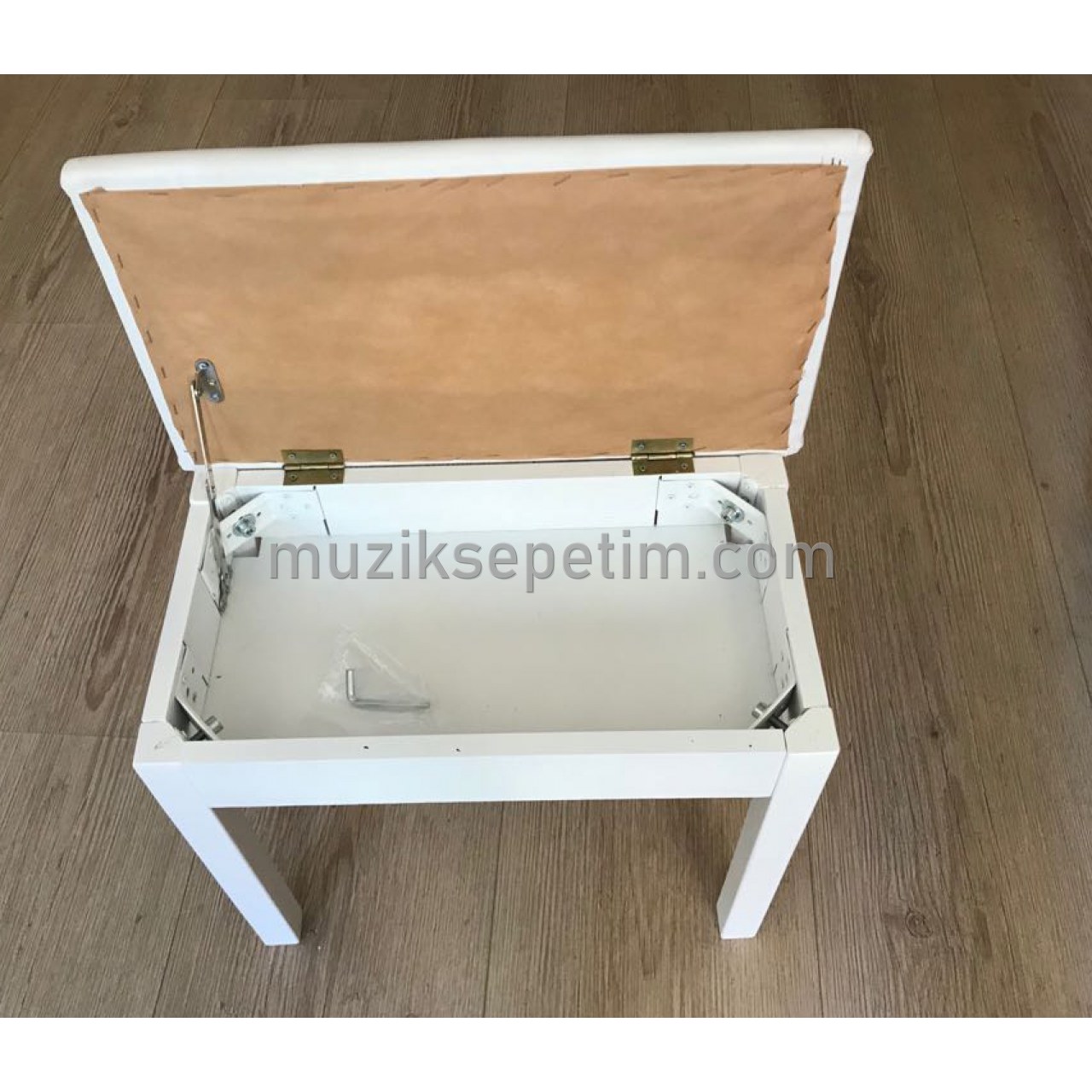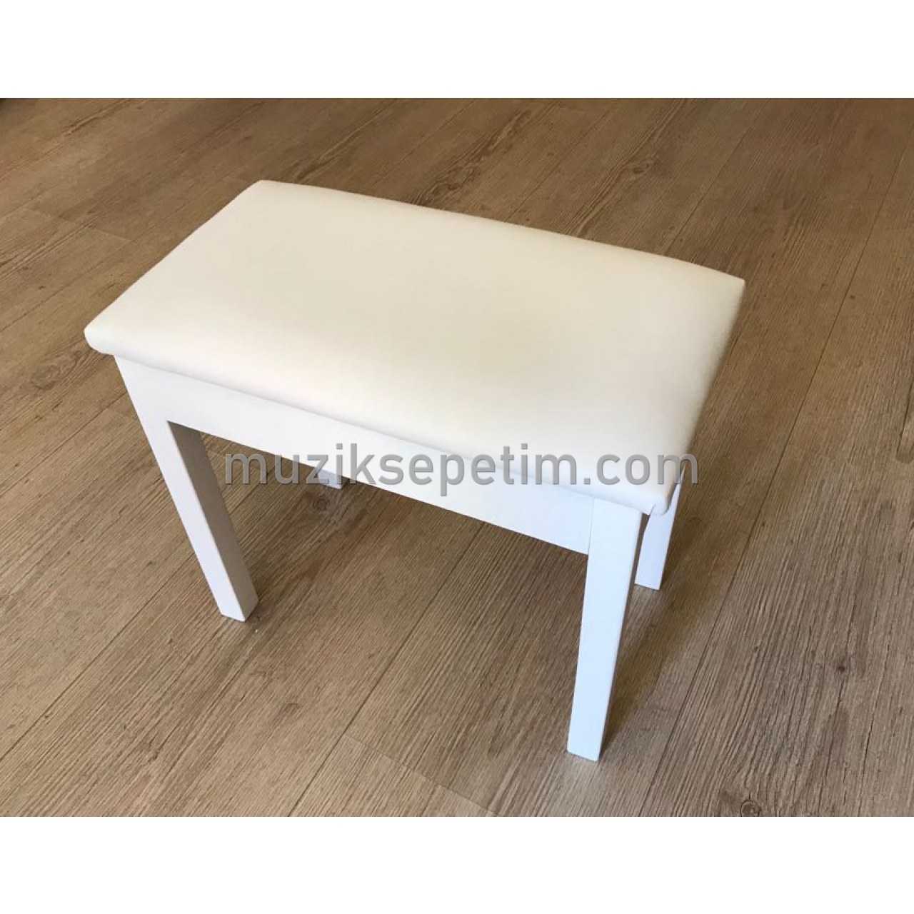 AYAKLARI MASİF VE DAYANIKLI AĞAÇTAN, SANDIKLI, BEYAZ RENK PİYANO TABURESİ,