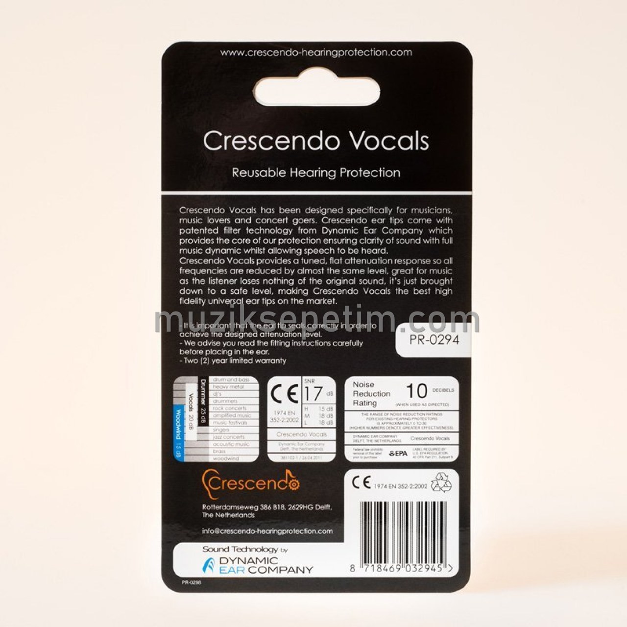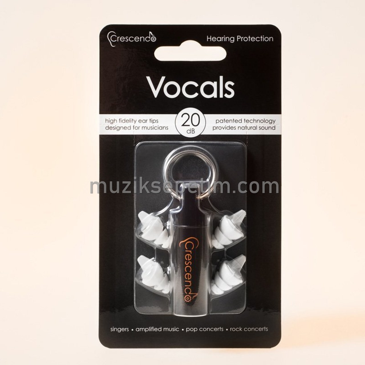 Crescendo Vocals (20dB) Müzisyenler için üretilmiş kulak tıkacı frekansları aynı oranda azaltmaya ayarlanmıştır. Orta ses seviyesinde müzik ortamları ve şarkıcılar, gitaristler ve müzik dinleyicileri için geliştirilmiştir.