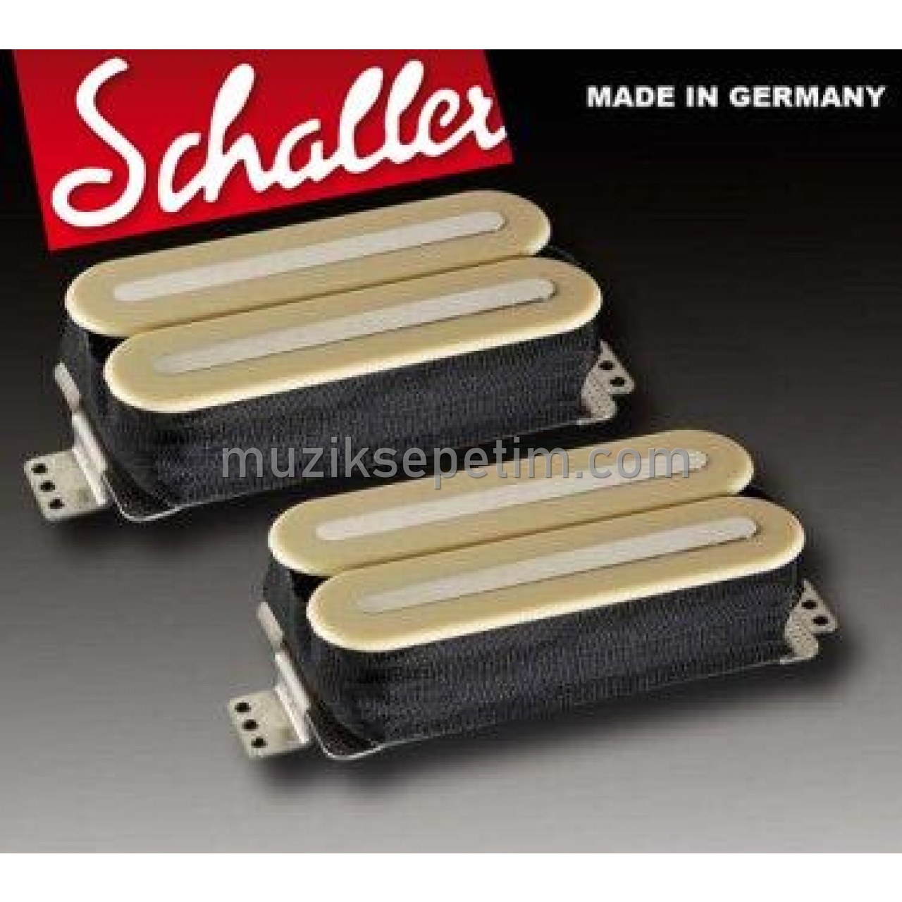 Humbucker with 3 strong ceramic magnets and 2 solid iron blades as pole pieces, hence no "dead spot" in the magnetic pick-up of the strings. Super high output and powerful, midrangy sound. Perfect for ultra heavy sounds with fat distortion. Very consistent pick-up even with extreme bendings. 4-conductor lead for series, parallel and single-coil wiring options. All Schaller pickups are manufactured to the highest quality requirements and the most demanding quality standards: In order to avoid deviations, the number of coil windings are controlled with utmost care. For a constant sound quality and reduced microphonics, all relevant metal parts are made of German silver. All humbuckers have the international standard dimensions, allowing them to fit into all conventional pickup rings. To avoid microphonic problems, all coils are vacuum-potted by means of a unique method. The colour selection includes black, creme and white plus the black/creme zebra combination. To provide the largest possible range of sounds, all humbuckers have 4-conductor leads. This allows the following wiring options: series, parallel, single coil, and out of phase. Schaller humbuckers are easily installed into any guitar where humbuckers were already mounted or planned. The mounting lug on the pickup baseplate has 3 instead of 2 screwholes and is thus universally usable with all common types. Furthermore, the use of the Schaller pickup frame with its 4-point fixation reliably prevents a tilting of the pickup in the frame. Our PickupFinder with all information about musical applications, technical specifications, wiring diagrams and much more can be viewed directly on our homepage.