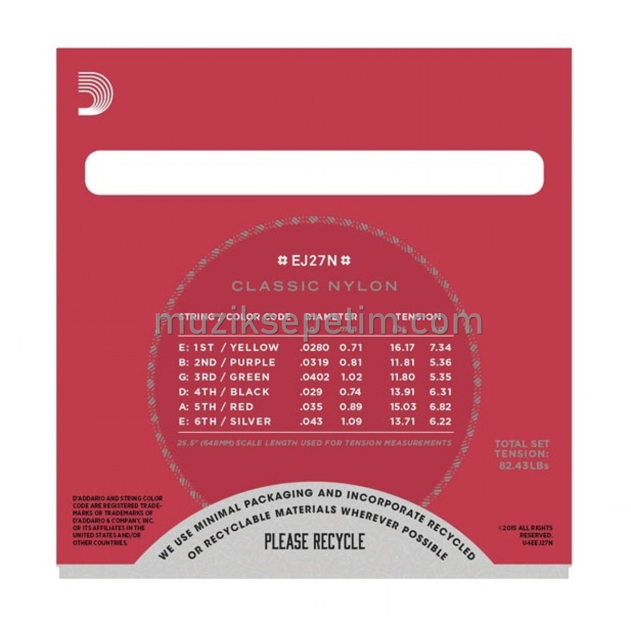 - D`Addario`nun giriş seviyesi klasik tel seti EJ27N, ses tonu sıcaklık ve projeksiyonunun optimal balansı ile tanınmıştır.