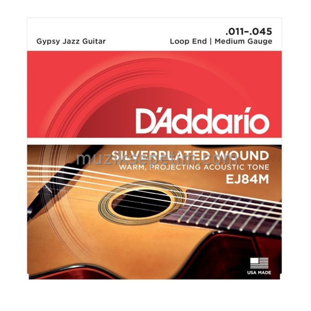 EJ84M loop end gypsy jazz acoustic guitar strings are designed and gauged for rhythm and strumming patterns associated with "Django", jazz-style guitar.