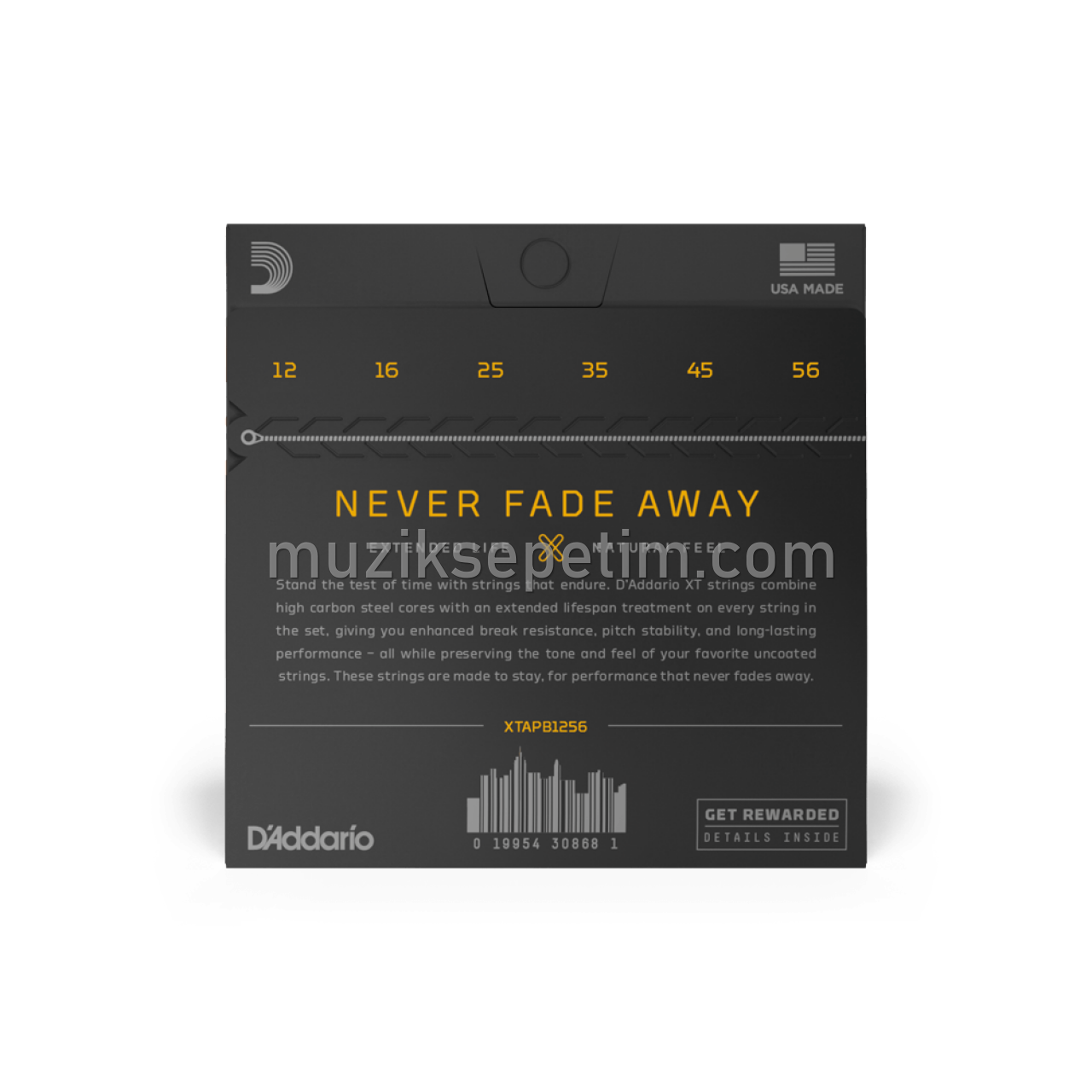 D’Addario XT dayanıklılık zaman testine tabi tutulmuş ve bu testten başarıyle geçmiştir. D’Addario XT telleri bizim en güçlü yüksek karbonlu çelik tellerimizin ileri korozyona dayanıklılık işlemine tabi tutulmasıyla oluşturulmıştur ve bu XT tel takımıs içindeki bütün teller için geçerlidir. Bu özellik bu tellere en yüksek kopma dayanıklılığı,değişmez bir pitch stabilitesi sağlarken o sevdiğiniz kaplamasız tellerin tonal ve his doğallığını da muhafaza eder. Bu teller performanslarından asla taviz vermez ses rengi değişmez ve solmaz.