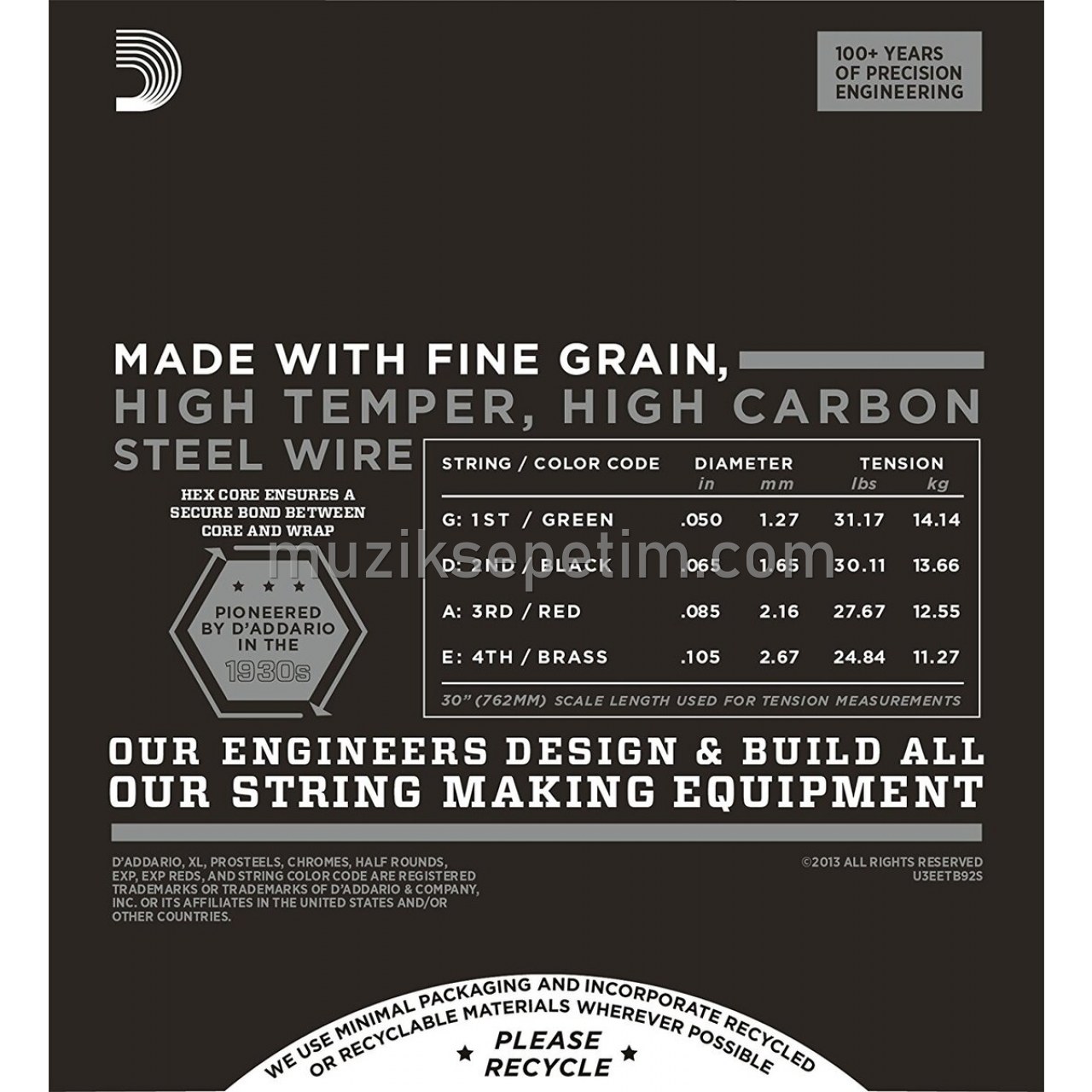 - Short Scale version of D`Addario`s popular ETB92 bass guitar set