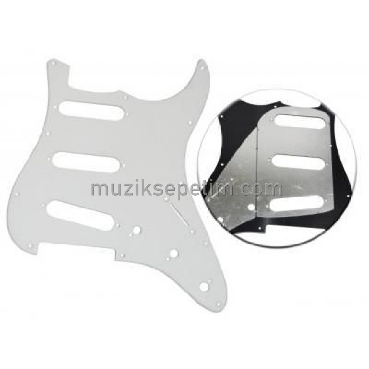 Stratocaster gitarlar için özel üretilmiş olan bu aparatı alıp, çizilmiş tahrip olmuş pena korumalığınızın yerine bu resimdeki yenisini takabilirsiniz. Göreceksiniz ki gitarınız nerdeyse yepyeni olacak.
