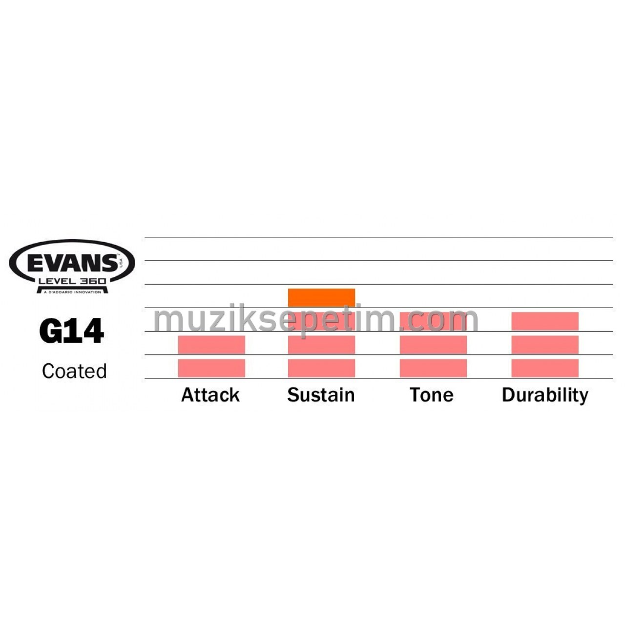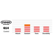 The Evans G14 series is the loudest, most durable single-ply drum head on the market. Crafted using premium quality film that is 14mil thick instead of the industry standard 10mil, the G14 delivers unprecedented durability without losing the strong dynamic response of a single-ply drumhead. Ideal for use in high-volume performance situations, the G14 can withstand heavy playing while projecting through the mix to provide a full, aggressive sound. The G14 is available in both clear and coated white versions, sizes 6 - 20 inches. Evans` proprietary white coating provides additional warmth of tone while the clear version provides a full frequency response for maximum projection.