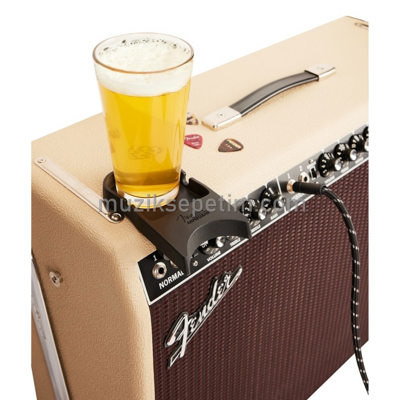 Amperstand Guitar Cradle, herhangi bir amplifikatörü veya masaüstünü, düşme korkusu olmadan gitarınızı yere koymak için mükemmel bir alan sağlar. Amperstand Cradle'ın altı, amplifikatör tolex dahil hemen hemen her yüzeyi güvenli bir şekilde kavrayacak ve size huzur vermek için beşiği yerinde tutacak güvenli bir yalıtım oluşturan bir mirco-emme malzemesiyle kaplıdır. Amperstand Cradle ayrıca, pena ve capo gibi küçük eşyaları veya en sevdiğiniz içeceği rahatça tutmak için klasik bir Fender "kül tablası" sağlar. Yanlardaki iki oluk gitar kablonuzu yerinde tutacaktır.