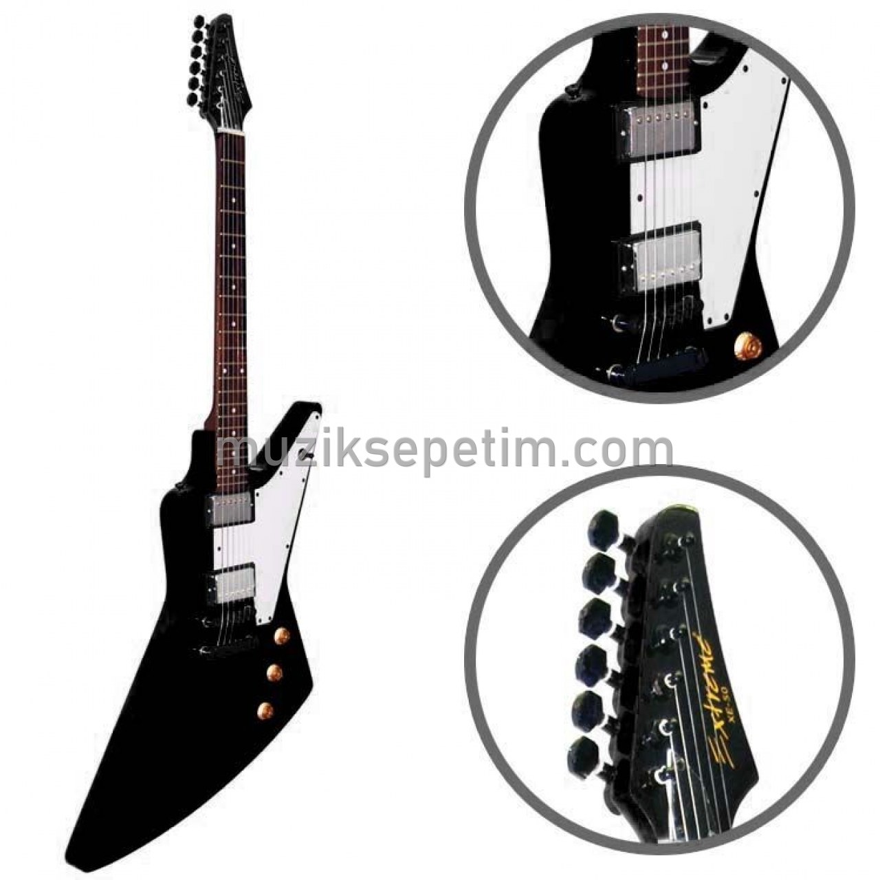 Gitar Elektro Extreme  XE50BK. Explorer model özel üretim gitar.