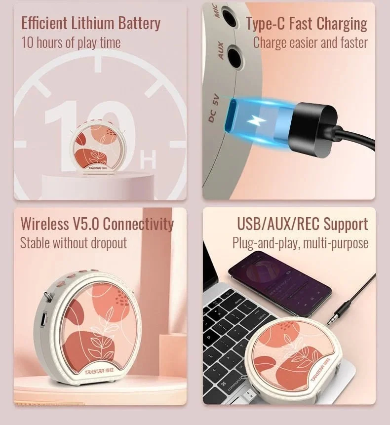 Takstar E20, Bluetooth 5.0 teknolojisi ile uyumludur. Bu sayede kablosuz olarak mobil cihazlara ve diğer Bluetooth özellikli cihazlara kolayca bağlanabilir.