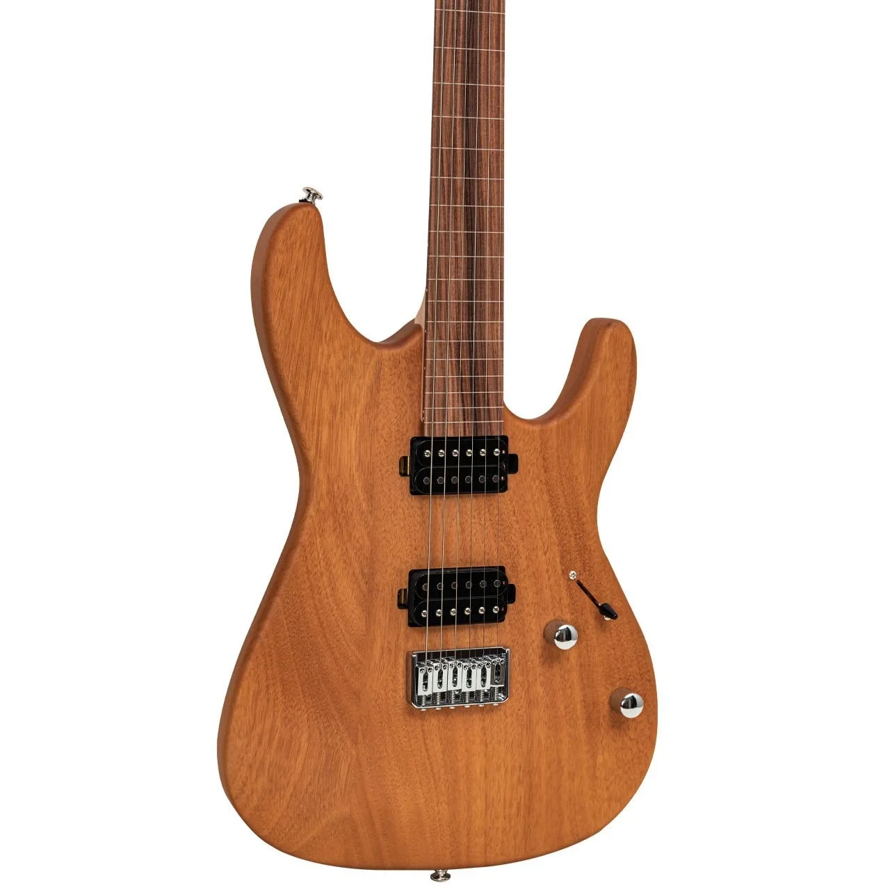 Mat Koyu Kahve Okoume Ağacı gövdesi, gitarın hafifliğini ve sağlamlığını bir araya getirirken, her çalımda kusursuz bir ton üretir.