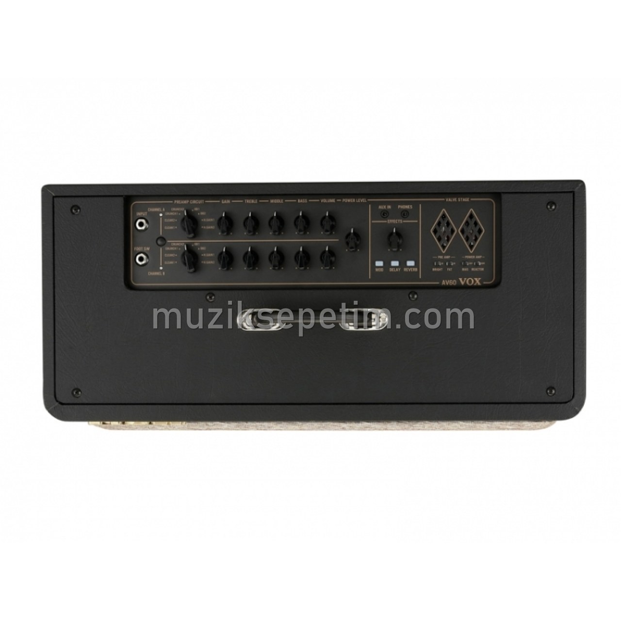 AV60, yılların vermiş olduğu güçlü amfi tonlarını full analog bir devre ile tek bir pakette birleştiren kompakt ve bir o kadar da konserlerde kullanılabilecek bir kombo. AV60, clean, crunch, overdrive ve high gain tonlarını beğeninize uygun olarak bright ve fat switchleri ile ayarlayabileceğiniz, temelde lambalı, çok devreli bir pre-amp'a sahip. Bu klasik tonları daha da geliştirebilmeniz için ayarlanabilir lambalı ve analog bir power-amp bölümü ve geliştirilmiş rezonans için tamamen kapalı bir hoparlör kabinine sahiptir. Analog sesli dijital Chorus, Delay ve Reverb efektleri ile de kendini tamamlıyor. VOX AV60, çok yönlü, inanılmaz bir sese sahip ve aynı zamanda ekonomik amfi arayan müzisyenler için idealdir.