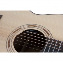 Bu grand auditorium gövde tasarımı sayesinde, masif Sitka ladini kapak, maun arka ve yanlar, kemik üst eşik ve saddle`lar ile büyük, geniş, gevrek ve klasik karakterdeki akustik gitar tonlarını kolayca üretiyor.